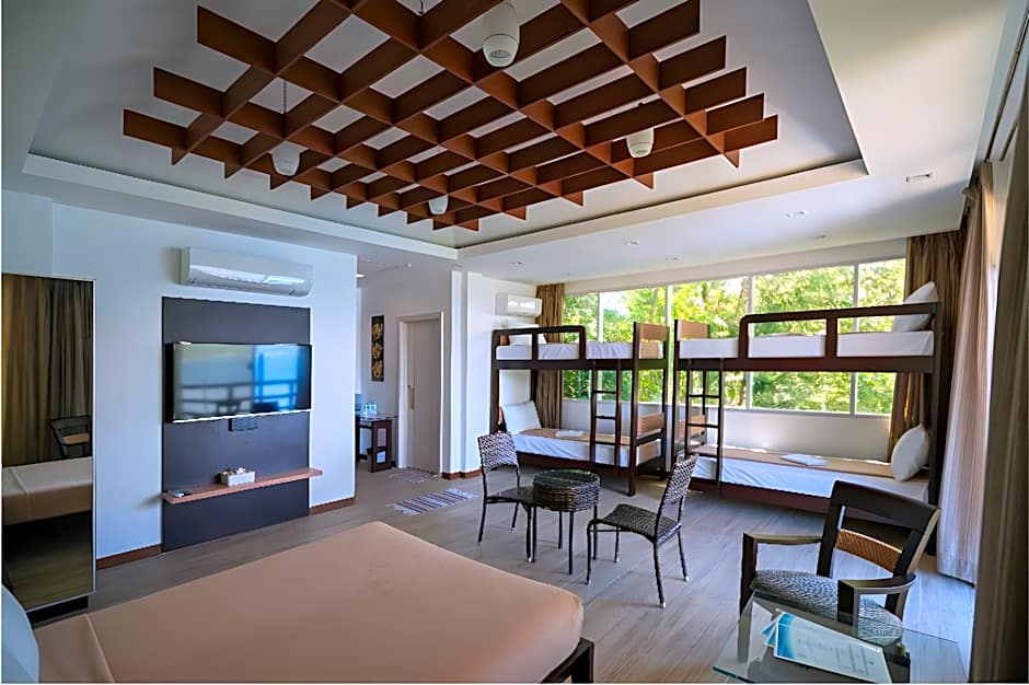 Accommodations come in a range of non-smoking options designed for two adults and one child. Notable choices include Room With Sea View (485 sqft), Bayfront Suite (302 sqft), Presidential Suite (517 sqft), Hillside Suite (248 sqft), and Family (291 sqft). Each room type emphasizes comfort and space, providing a welcoming base for sun-soaked days and seaside explorations.
